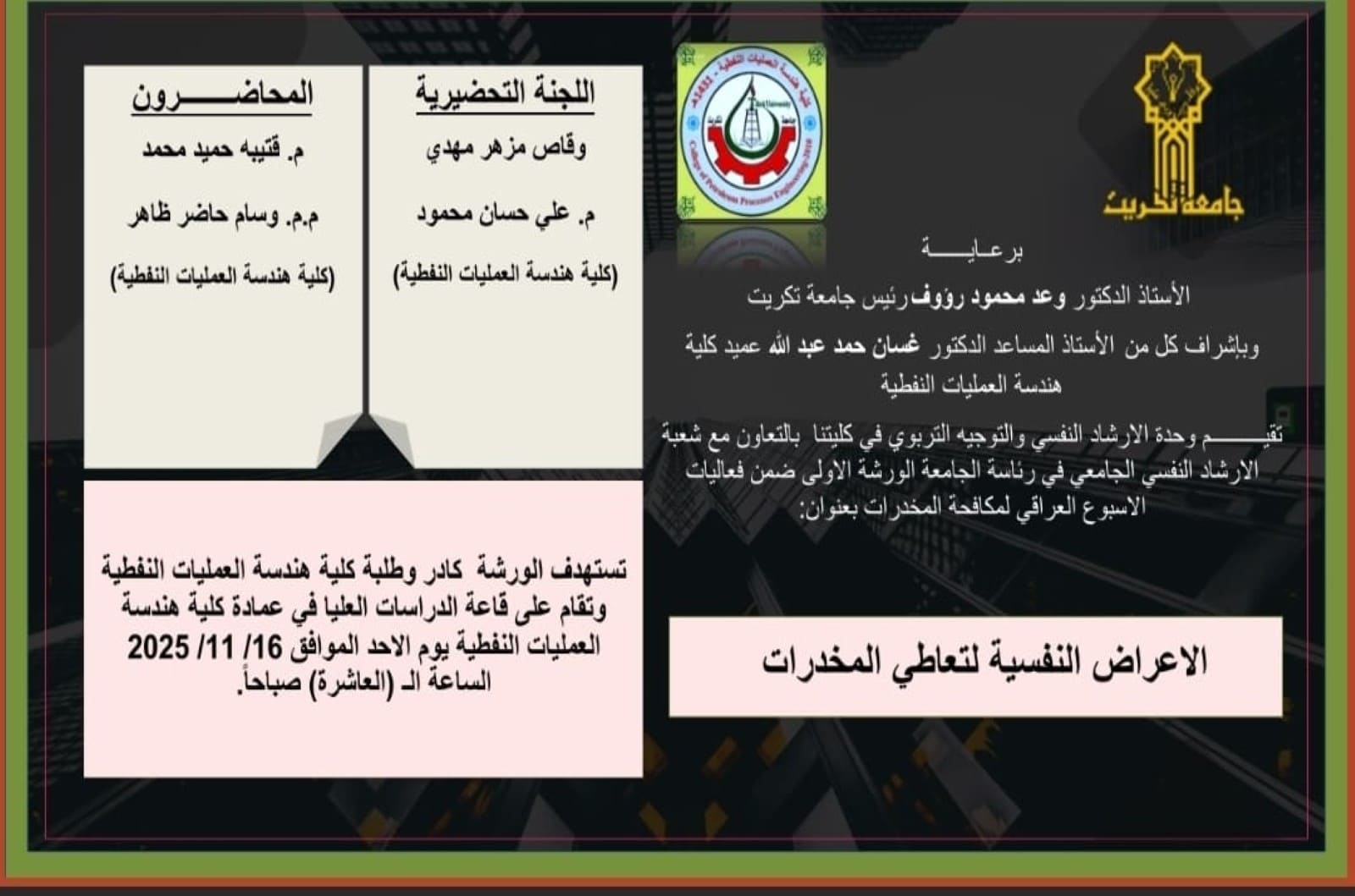 "ورشة توعوية حول الأعراض النفسية لتعاطي المخدرات وتأثيرها على سلوك الشباب"