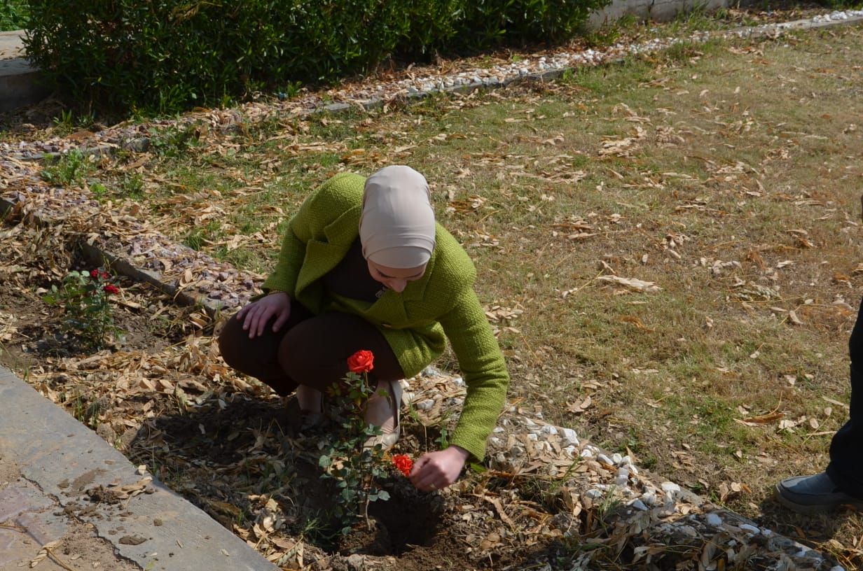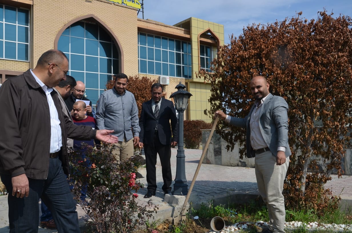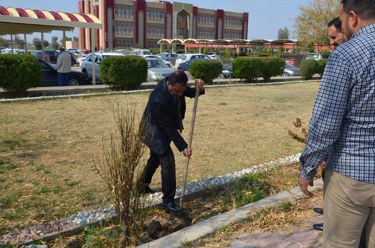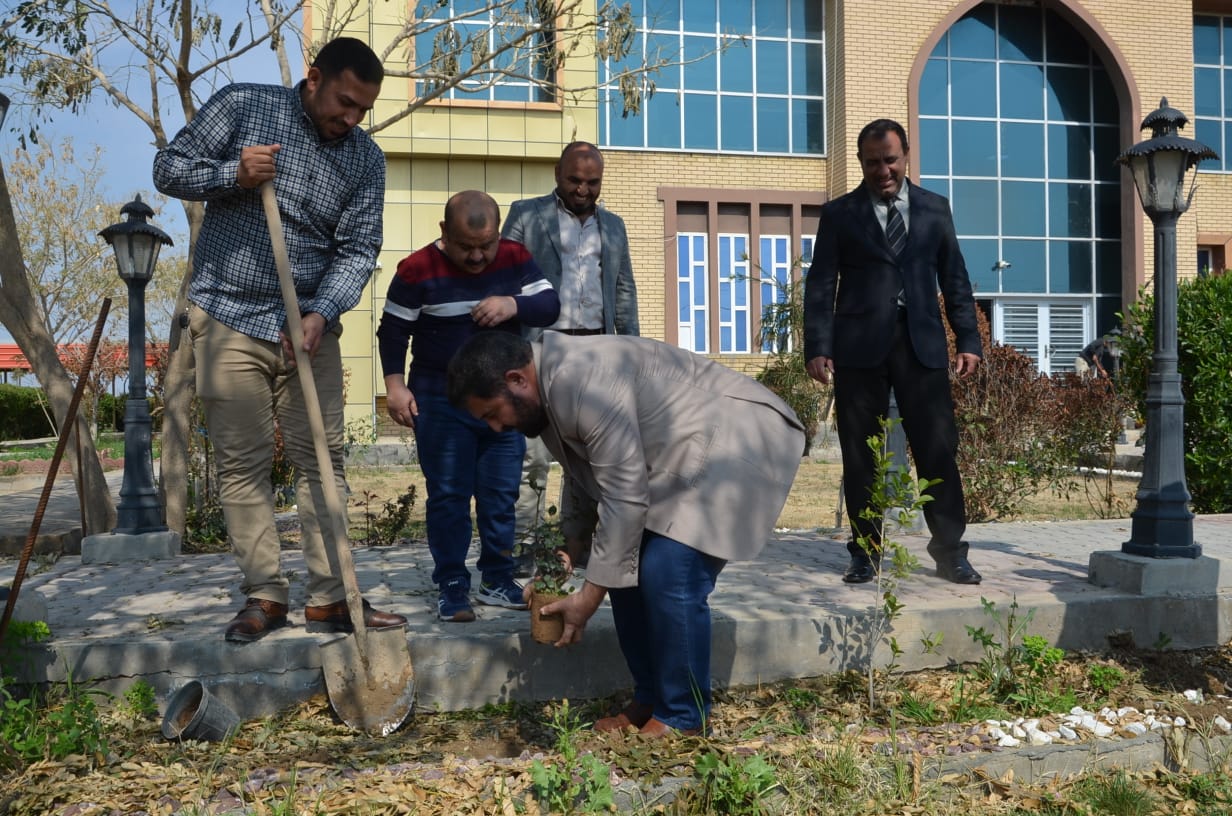 حيث تم غرس مجموعة من الأشجار المعمرة والصديقة للبيئة في حدائق الكلية.