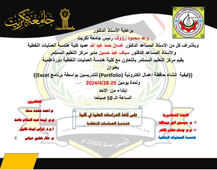 (دورة علمية بعنوان كيفية انشاء حافظة اعمال الكترونية (Portfolio) للتدريسيين بواسطة برنامج Excel)