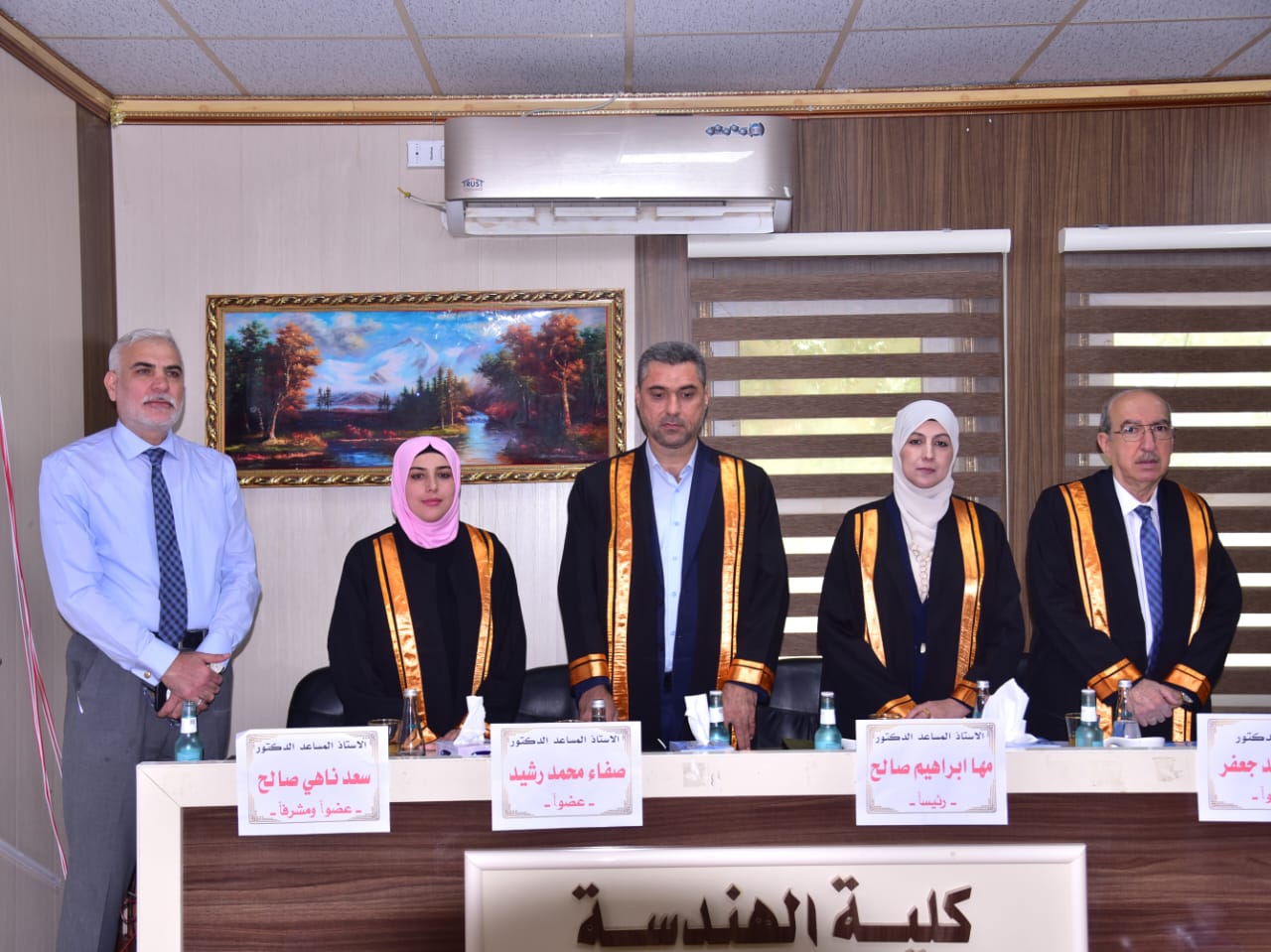 وقد اقيمت المناقشة في رحاب قاعة المناقشات في قسم الهندسة الكيمياوية في كلية الهندسة. واوصت اللجنة بقبول رسالة الباحثة في اختصاص الهندسة الكيمياوية.
