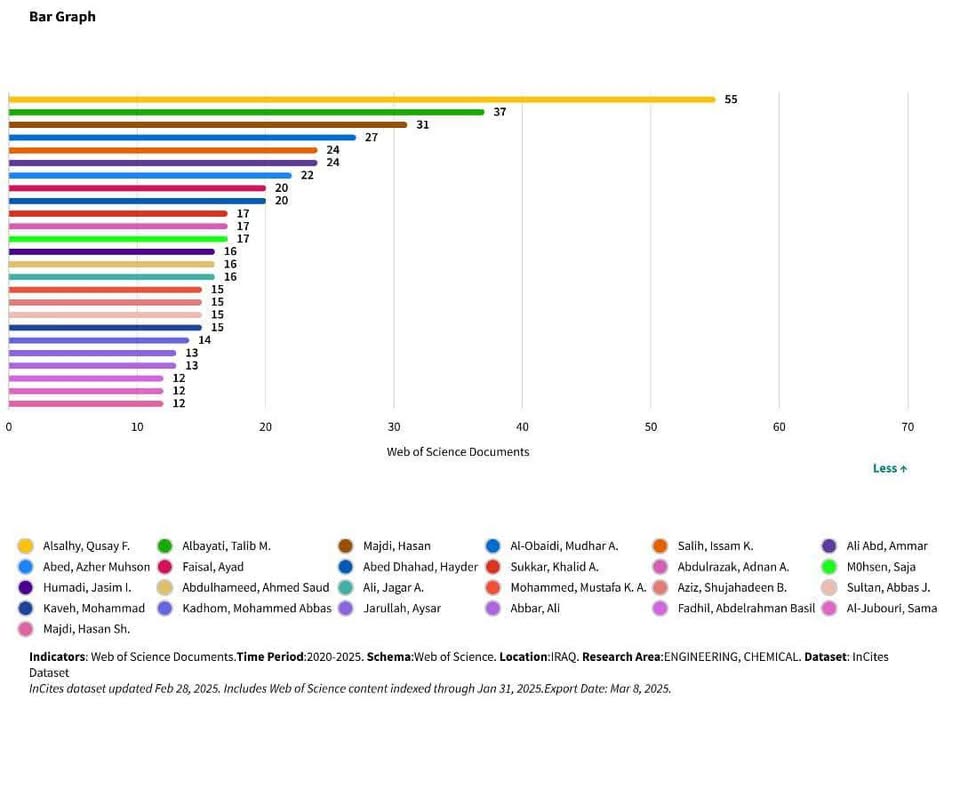 ضمن اول 25 باحث الاكثر نشرا في تخصصين