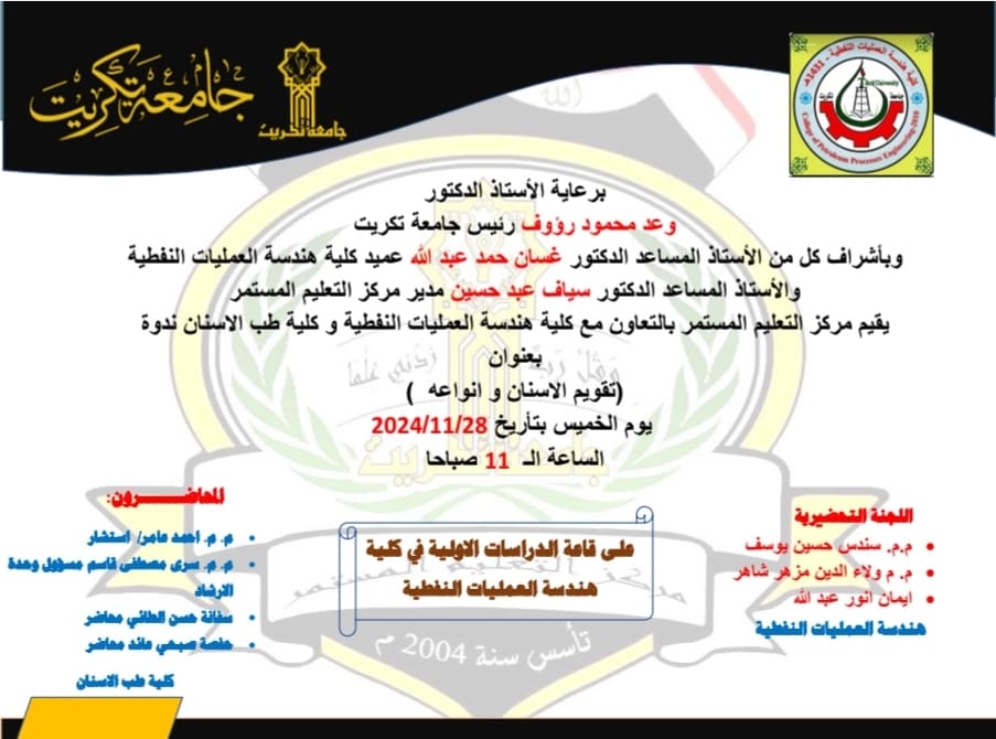 "اختيار تدريسي من كلية هندسة العمليات النفطية مقيّماً علمياً لأكثر من أربعين بحثاً في مجلات عالمية رصينة"