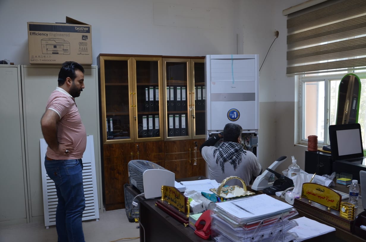 حملة صيانة وتأهيل لأجهزة التبريد في الكلية لغرض توفير أجواء مناسبة للموظفين مع تزامن حلول فصل الصيف