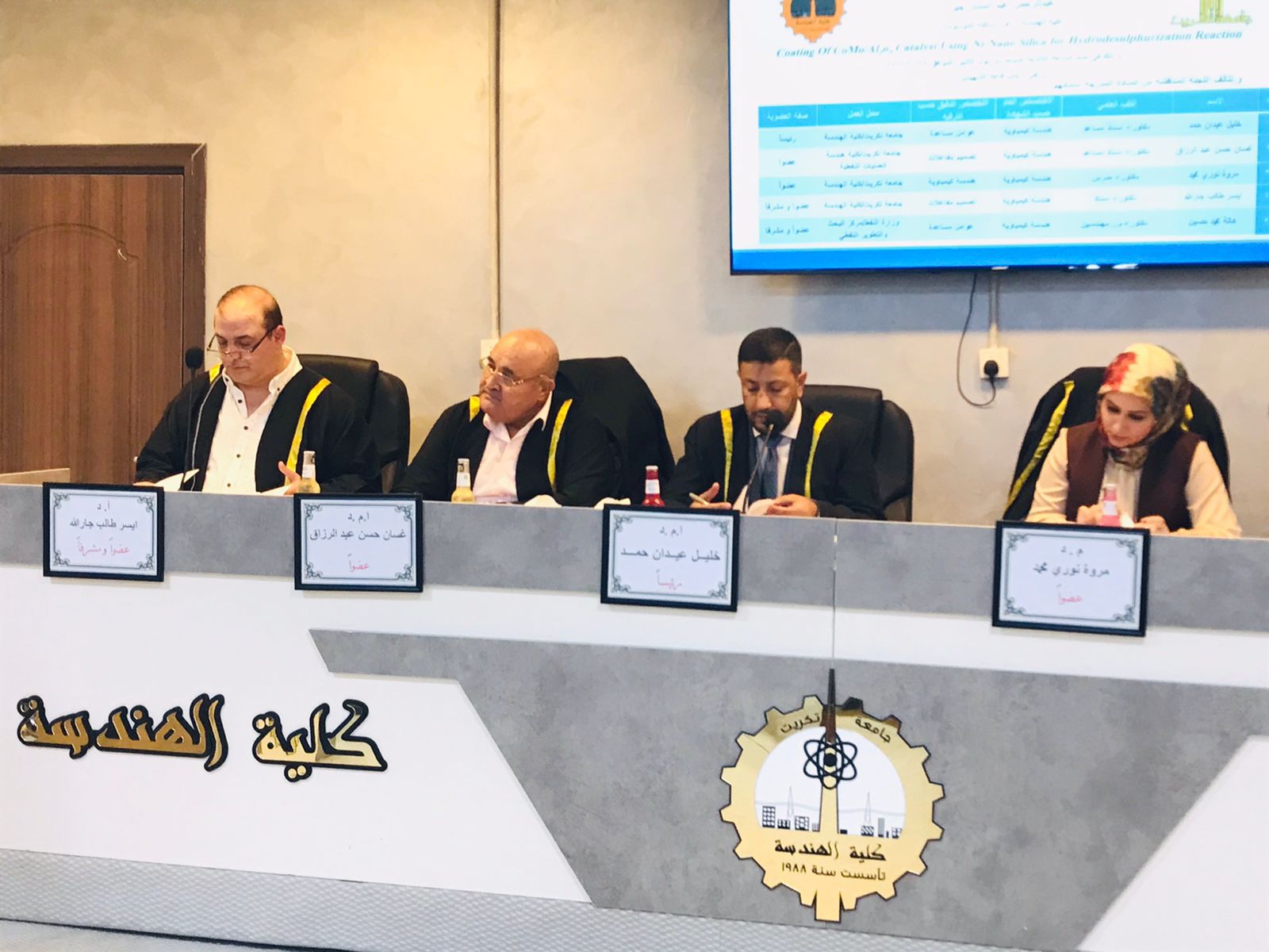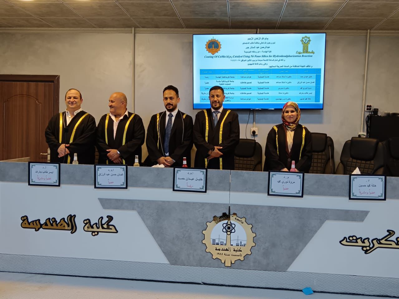 ك عضو للجنة مناقشة رسالة ماجستير في كلية الهندسة جامعة تكريت في قسم الهندسة الكيمياوية لطالب الماجستير عبد الرحمن عبد الستار جبر