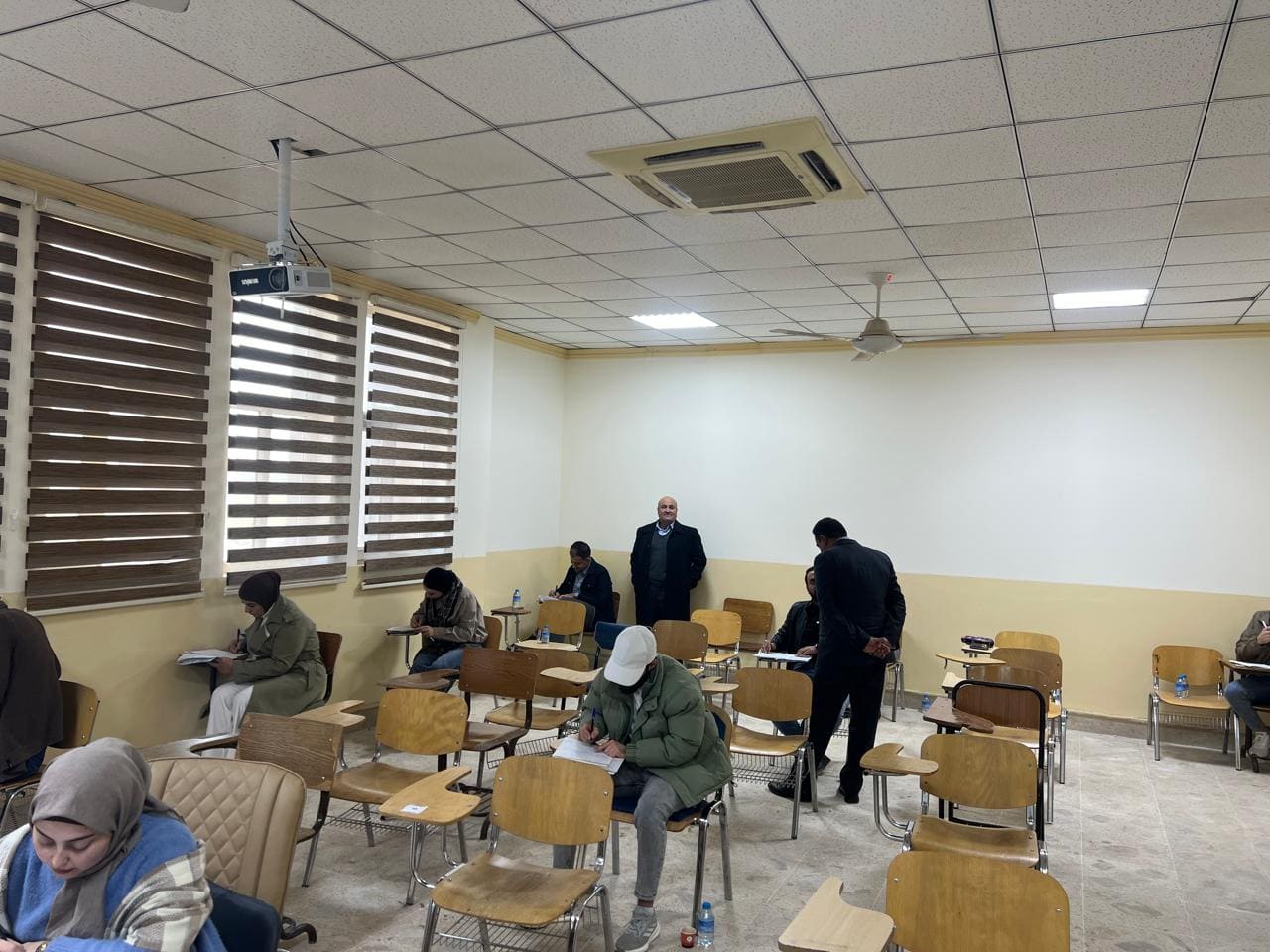 في إطار حرص عمادة كلية هندسة العمليات النفطية على ضمان حسن سير العملية الامتحانية تابع السيد عميد الكلية الأستاذ المساعد الدكتور غسان حمد عبد الله ميدانيًا سير امتحانات نهاية الفصل الدراسي الأول لطلبة الدراسات الأولية والعليا في جميع أقسام الكلية وذلك صباح يوم الأحد الموافق 11/1/2026.