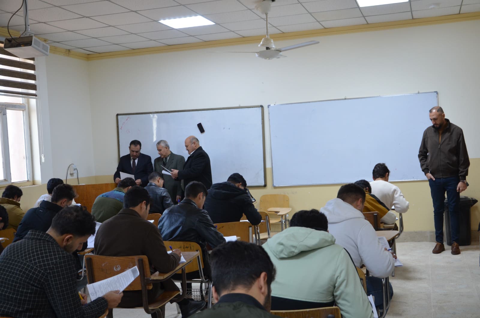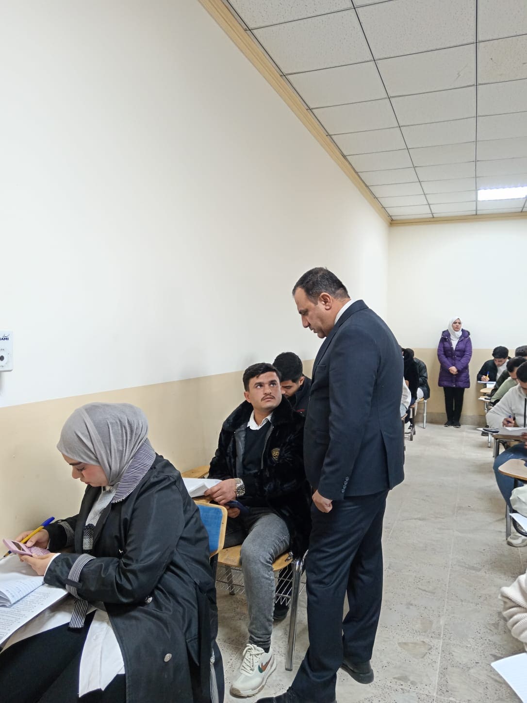 واطّلع السيد العميد خلال جولته على طبيعة الأسئلة ومدى ملاءمتها للمناهج الدراسية إضافةً إلى تهيئة القاعات الامتحانية وتوفير الأجواء المناسبة للطلبة بما يضمن انسيابية الامتحانات وسيرها وفق الضوابط والتعليمات الوزارية.
