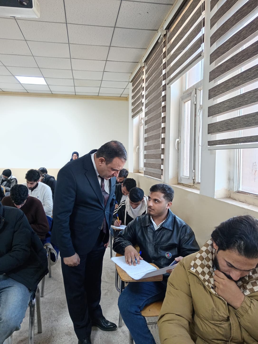 تابع السيد عميد كلية هندسة العمليات النفطية الأستاذ المساعد الدكتور غسان حمد عبد الله يوم الأحد الموافق 4/1/2026 ميدانيًا سير امتحانات نهاية الفصل الدراسي الأول للدراسات الأولية والعليا في أقسام الكلية.