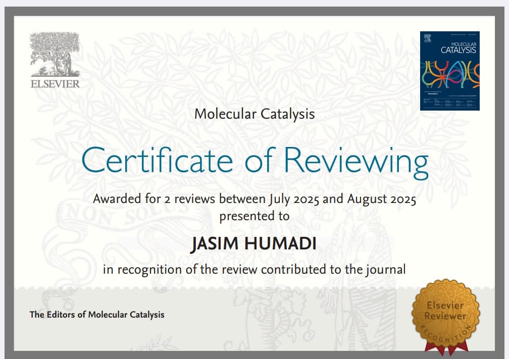 ● أُختير الباحث و التدريسي في كلية هندسة العمليات النفطية-جامعة تكريت المدرس جاسم ابراهيم حمادي مقيماً علمياً لأكثر من أربعين بحثاً في مجلات عالمية رصينة ذات معامل تأثير خلال العام الدراسي 2024-2025.0. فقد اختارت دور النشر العالمية الرصينة Elsevier Springer Nature الباحث مقيماً علمياً لعدد من البحوث علماً أن المجلات منضوية في قاعدة البيانات للعديد من المؤسسات المعتمدة منها: Scopus Web of Science & Clarivate Analytics