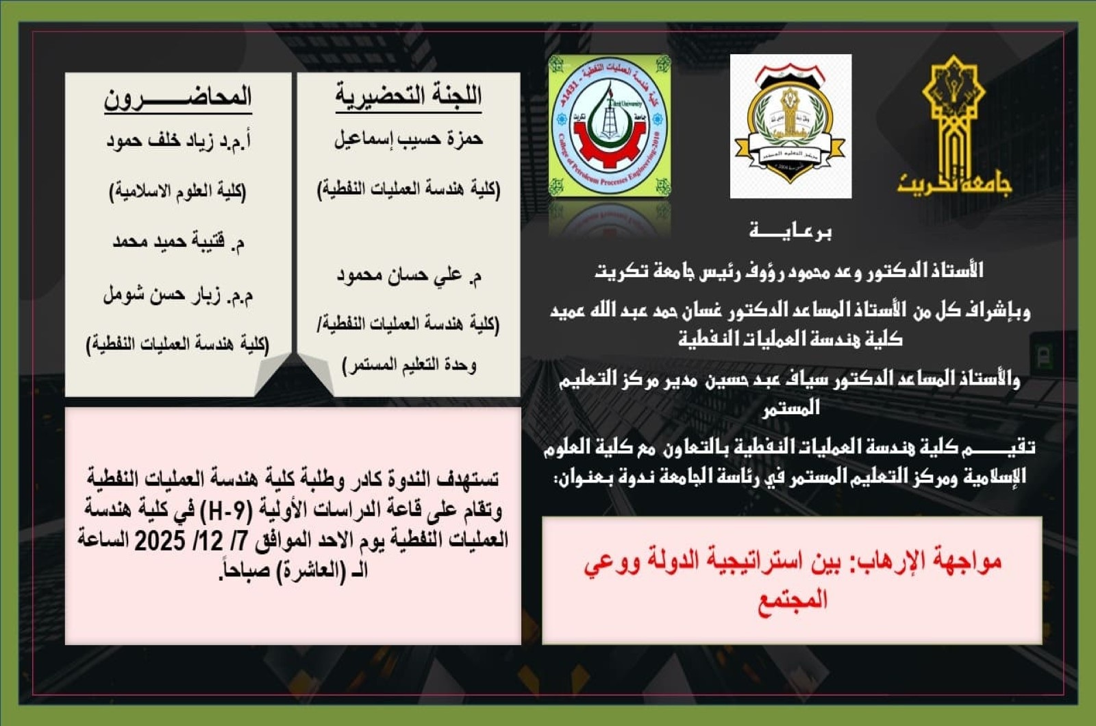 تعتبر كلية هندسة العمليات النفطية من الكليات الحديثة، حيث باشرت أعمالها سنة 2010م بإمكانيات بسيطة وكوادرقليلة جداً إلا أنّ منجزاتها التي أنجزت خلال هذه الفترة تعد منجزات عظيمة مقارنة بهذه الإمكانيات وقد شهدتتحديات كبيرة وعقبات عديدة استطاعت وبكل فخر أن تجتازها بثقة وإصرار على مواصلة المسيرة التعليمية في هذهالكلية وهي تسعى للصدارة محلياً بل وحتى عالمياً. هذا ويصب اختصاص كلية هندسة العمليات النفطية في مجال الصناعة التحويلية للنفط والصناعات الساندة لها وتتضمن قسمين هما: قسم هندسة تكرير النفط والغاز والذي يختص: بتكرير النفط الخام المستخرج من باطن الارض ومعالجة المنتجات النفطية بعد عملية التكرير، وقسم هندسة سيطرة المنظومات النفطية والذي يختص:بعمليات السيطرة المركزية وإدارة المنشآت النفطية. وتقدم الكلية برامج مختلفة من أجل اعداد الكوادر الهندسية عالية الكفاءة بتخصص القسمين. وتطمح الكلية الى التحسين المستمر من ناحية الكم والنوع لإنتاج جيل من المهندسين القادرين على خدمة بلدهم والمشاركة الفعالة في عملية البناء والتنمية الشاملة في جميع ميادين الحياة. وتسعى الكلية الى استحداث اقسام جديدة بتخصصات نادرة اخرى مثل هندسة النفط والغاز وهندسة الطاقات المتجددة التي تخدم المحافظة والبلد. |