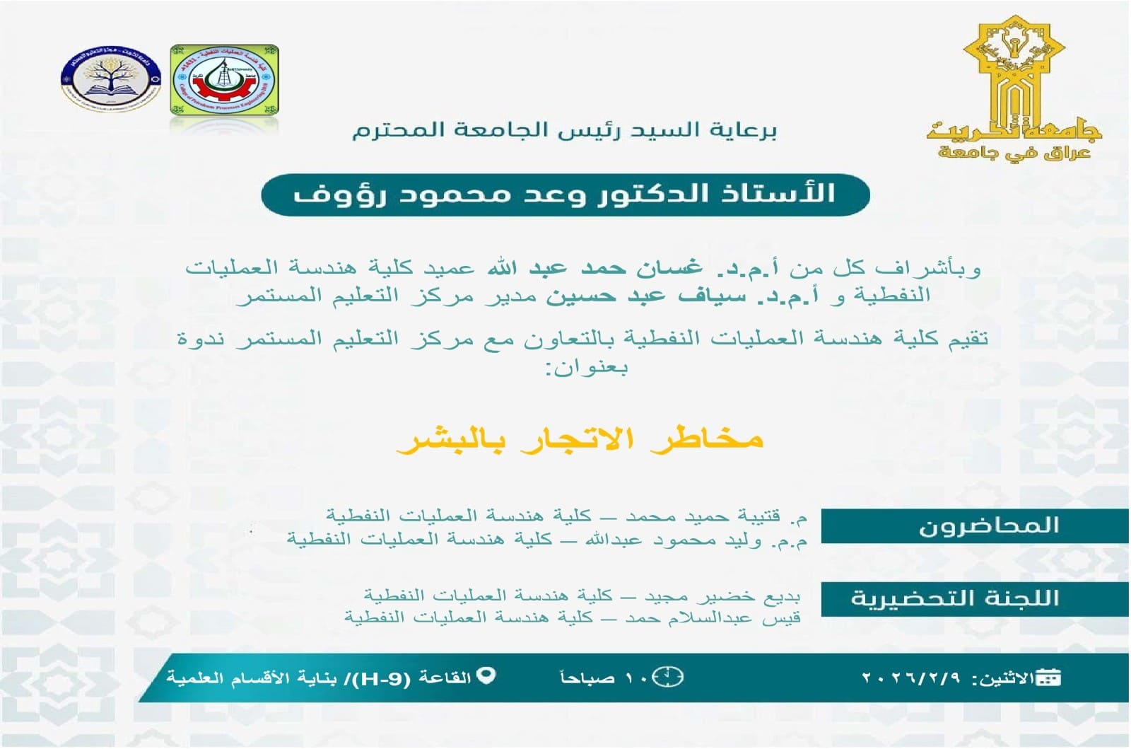 ندوة بعنوان: مخاطر الاتجار بالبشر