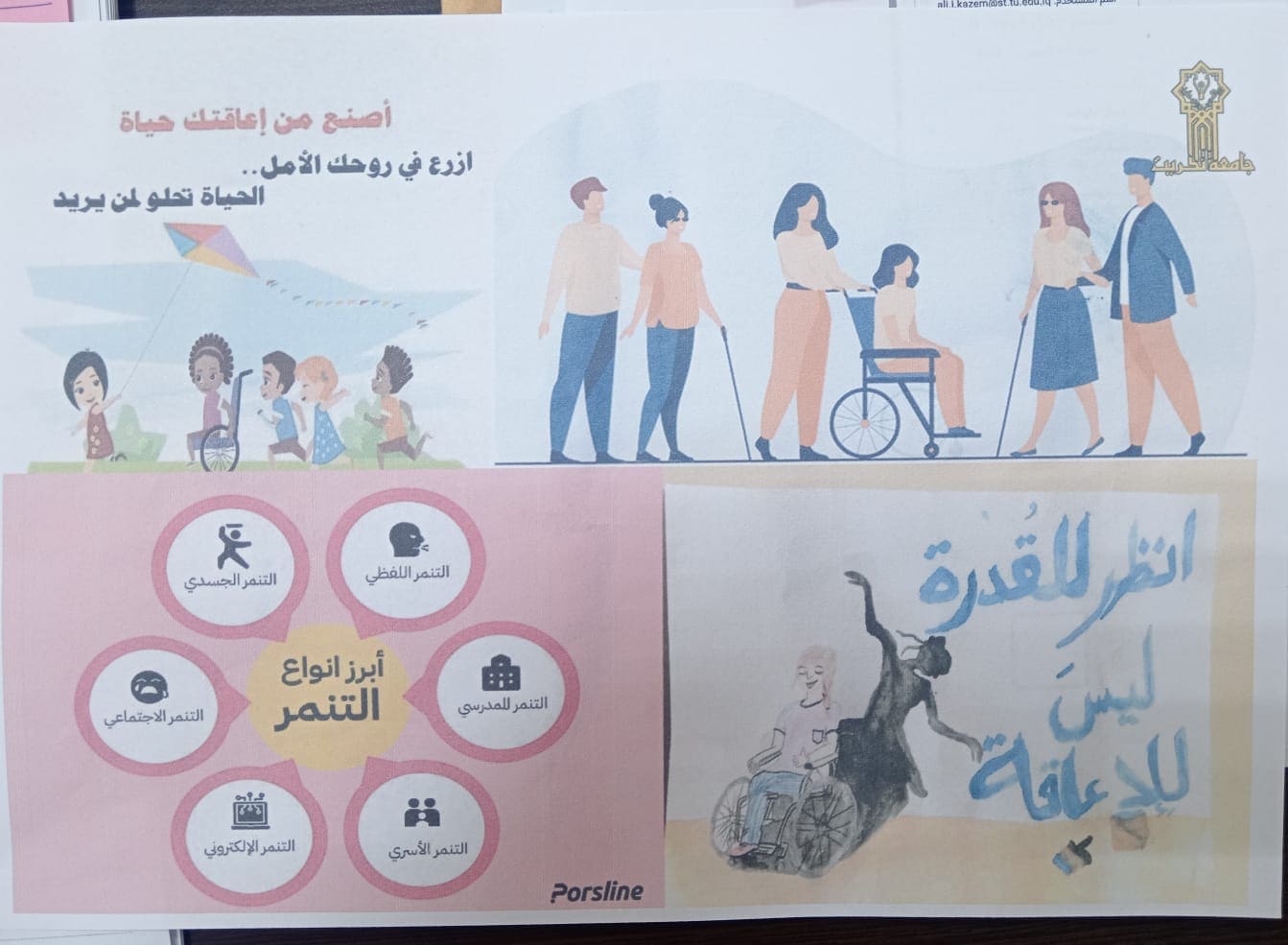 أقامت كلية هندسة العمليات النفطية وبالتعاون مع قسم الإعلام والاتصال الحكومي وشعبة شؤون المواطنين ووحدة شؤون المرأة المعاقة في رئاسة الجامعة دورة بعنوان: (بناء المناعة النفسية لدى ذوي الهمم لمواجهة التنمر) وذلك لمدة ثلاثة أيام ابتداءً من يوم الأحد الموافق 16/11 ولغاية يوم الثلاثاء 18/11/2025 على قاعة الدراسات الأولية في الكلية. تضمّنت الدورة محاضرات وفعاليات توعوية شملت توزيع مطويات على المنتسبين والطلبة في أرجاء الجامعة بهدف نشر الوعي بأهمية بناء المناعة النفسية وتقليل مظاهر التنمر والعنف تجاه ذوي الهمم. قدّم محاضرات الدورة كلٌّ من: