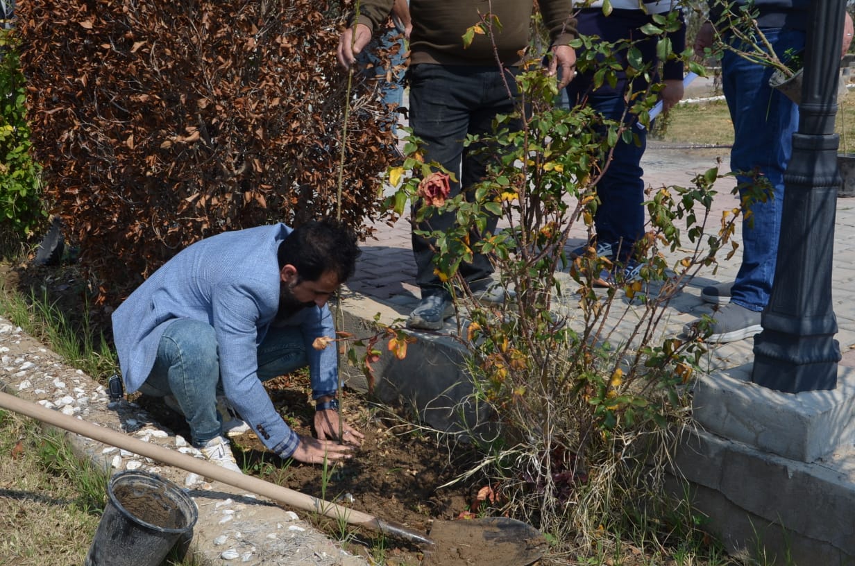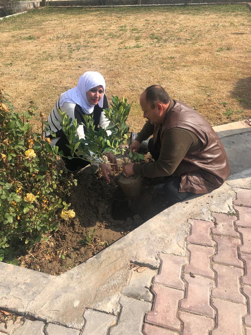 حيث تم غرس مجموعة من الأشجار المعمرة والصديقة للبيئة في حدائق الكلية.