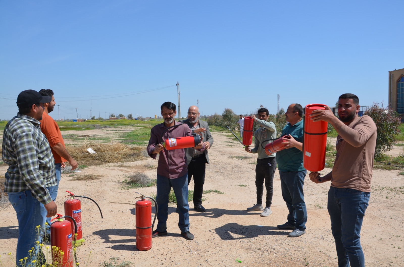 بتوجيه من الاستاذ المساعد الدكتور ( غسان حمد عبدالله ) عميد كلية هندسة العمليات النفطية وإشراف المدرس جواد محمد حميد معاون العميد للشؤون الادارية اجرى الاستاذ حسين محمد صالح مسؤول وحدة الدفاع المدني في الكلية محاضرة عملية وميدانية لموظفي الكلية في كيفية استخدام قناني الإطفاء في اخماد الحرائق في الكلية في حالة الطورائ لا سامح الله تعالى وبدورهم السيد عميد الكلية والسيد المعاون الإداري اثنوا على هذه المبادرة الضرورية