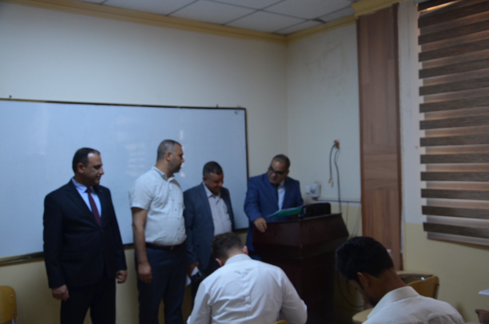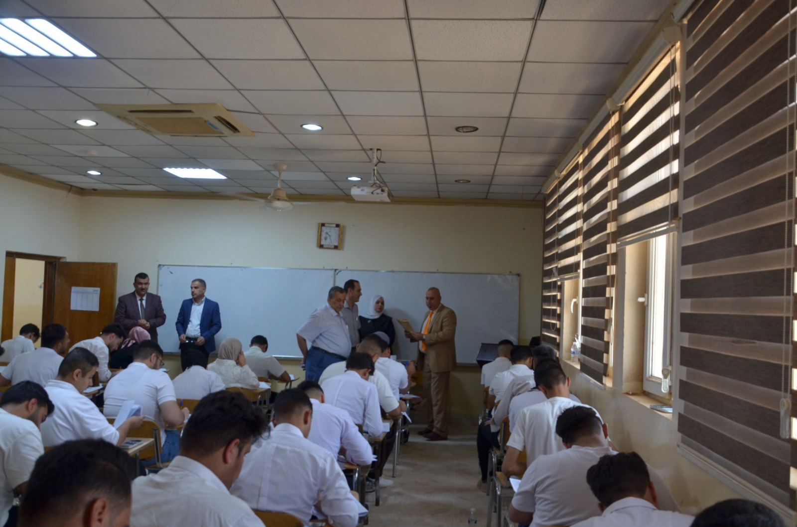 اللجنة المركزية اجرت جولة شاملة للقاعات واللجان الامتحانية والاطلاع على سير الامتحانات والإجراءات المتبعة بكل تفاصيلها ومنها تطبيق معايير وتعليمات وزارة التعليم العالي والبحث العلمي ورئاسة الجامعة بهذا الخصوص، وشملت الزيارة تفقد قاعات الاختبارات والاطلاع على سير العملية الامتحانية والتأكد من توفير كافة مستلزمات الراحة للطلاب، كما التقت اللجنة بعدد من التدريسيين المشرفين على سير الامتحانات، واستمعت إلى ملاحظاتهم واقتراحاتهم.