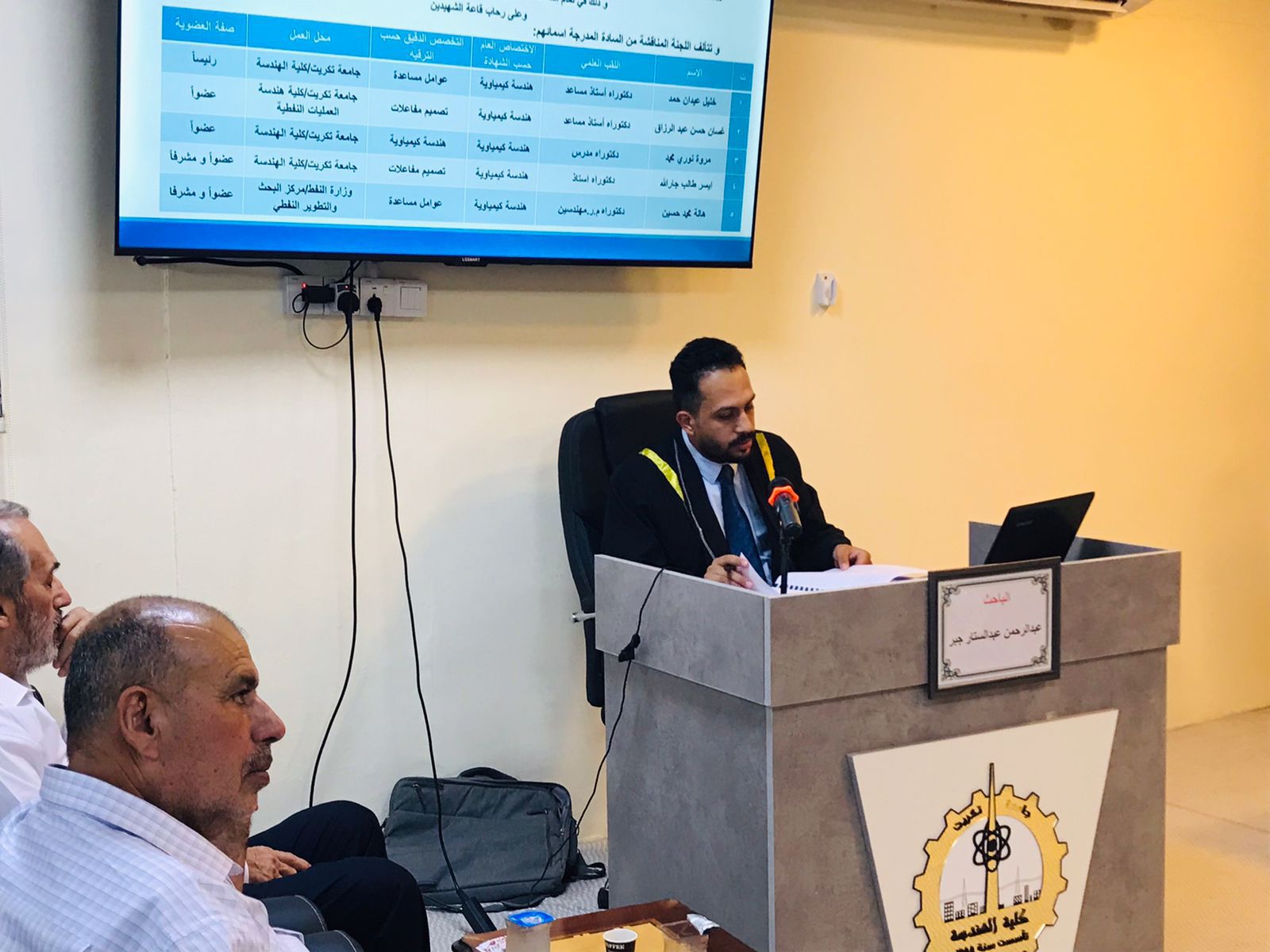 ك عضو للجنة مناقشة رسالة ماجستير في كلية الهندسة جامعة تكريت في قسم الهندسة الكيمياوية لطالب الماجستير عبد الرحمن عبد الستار جبر