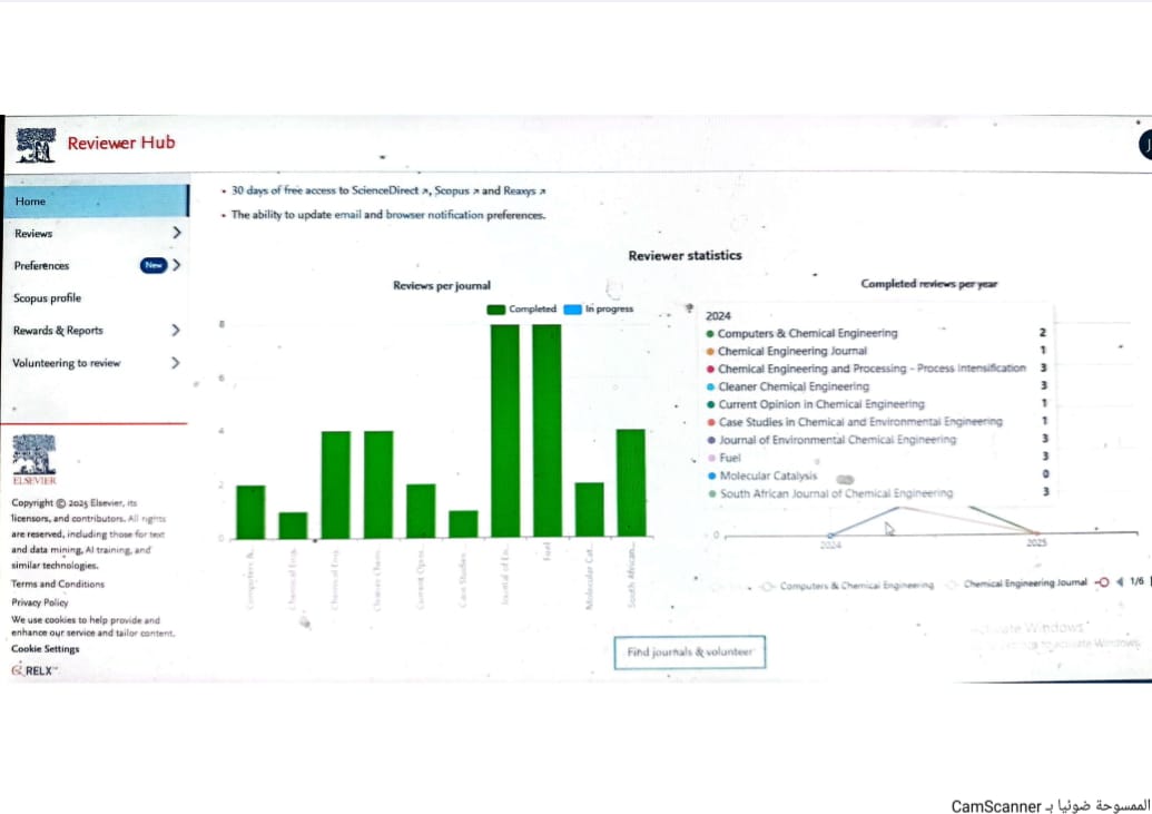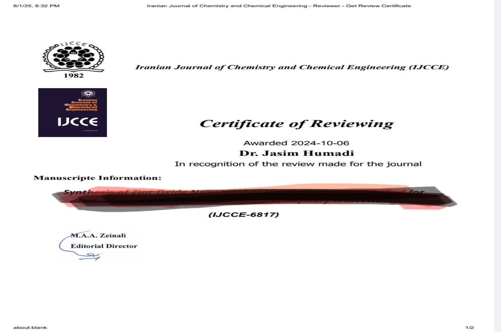 ● أُختير الباحث و التدريسي في كلية هندسة العمليات النفطية-جامعة تكريت المدرس جاسم ابراهيم حمادي مقيماً علمياً لأكثر من أربعين بحثاً في مجلات عالمية رصينة ذات معامل تأثير خلال العام الدراسي 2024-2025.0. فقد اختارت دور النشر العالمية الرصينة Elsevier Springer Nature الباحث مقيماً علمياً لعدد من البحوث علماً أن المجلات منضوية في قاعدة البيانات للعديد من المؤسسات المعتمدة منها: Scopus Web of Science & Clarivate Analytics