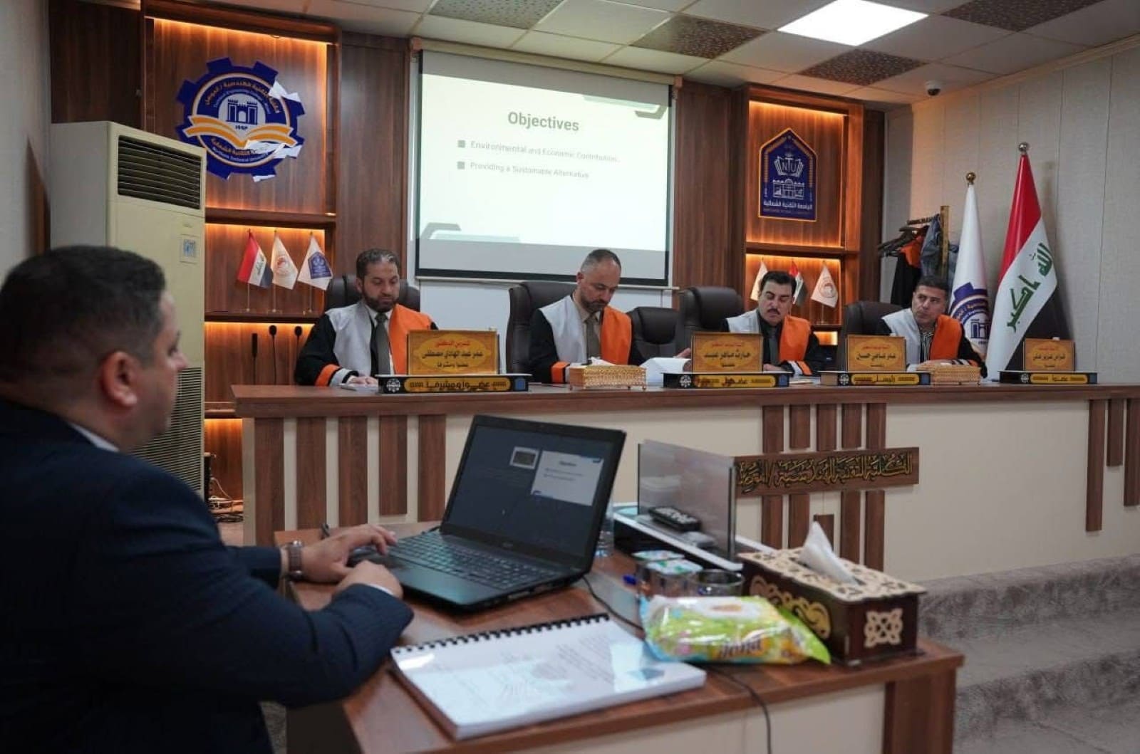 مشاركة تدريسي من كليتنا … شارك الاستاذ المساعد الدكتور عمر عاصي حسين برئاسة لجنة مناقشة رسالة ماجستير…الجامعة التقنية الشمالية تناقش أداء العزل الحراري للعازل المكون من مادة مركبة مصنوعة من مواد النفايات بحثت الكلية التقنية الهندسية / الموصل رسالة الماجستير التقني تخصص تقنيات هندسة الحراريات والموسومة:-